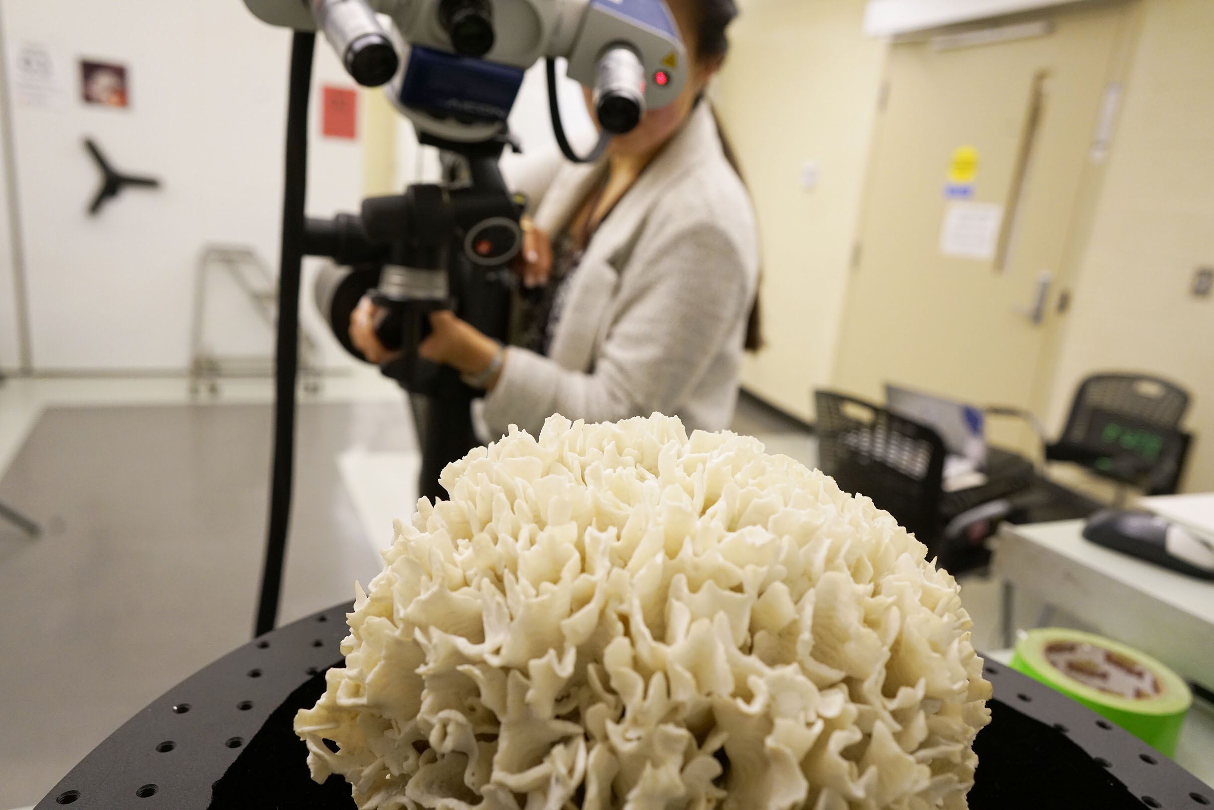 The first major project I worked on is the Smithsonian National Museum of Natural History Coral Pilot Project. The 3D team worked with Tim Coffer, a Collections Manager to design the pilot project. I performed Smartscan support on a structured light scanner and documentation lead. This machine projects a fringe like pattern on the object and the two cameras attached take that information and produce a high-resolution surface model of roughly one square inch on the surface. Over the course of two weeks in the Invertebrate Zoology Department, I 3D scanned twenty corals. The 3D models of the corals will eventually become interactive online experiences to engage the public in reef health and to be used in classrooms. A sample coral that was shot before I came to the office is already online.